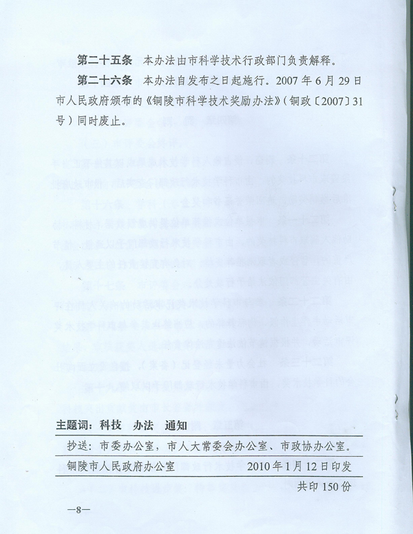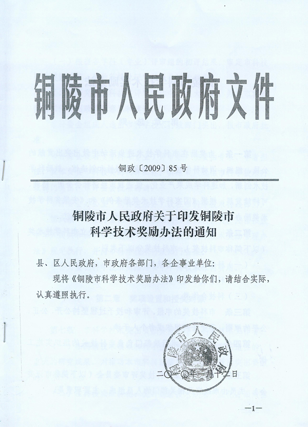 铜陵市人民政府关于印发铜陵市科学技术奖励办法的通知 - 网络十大博彩app下载